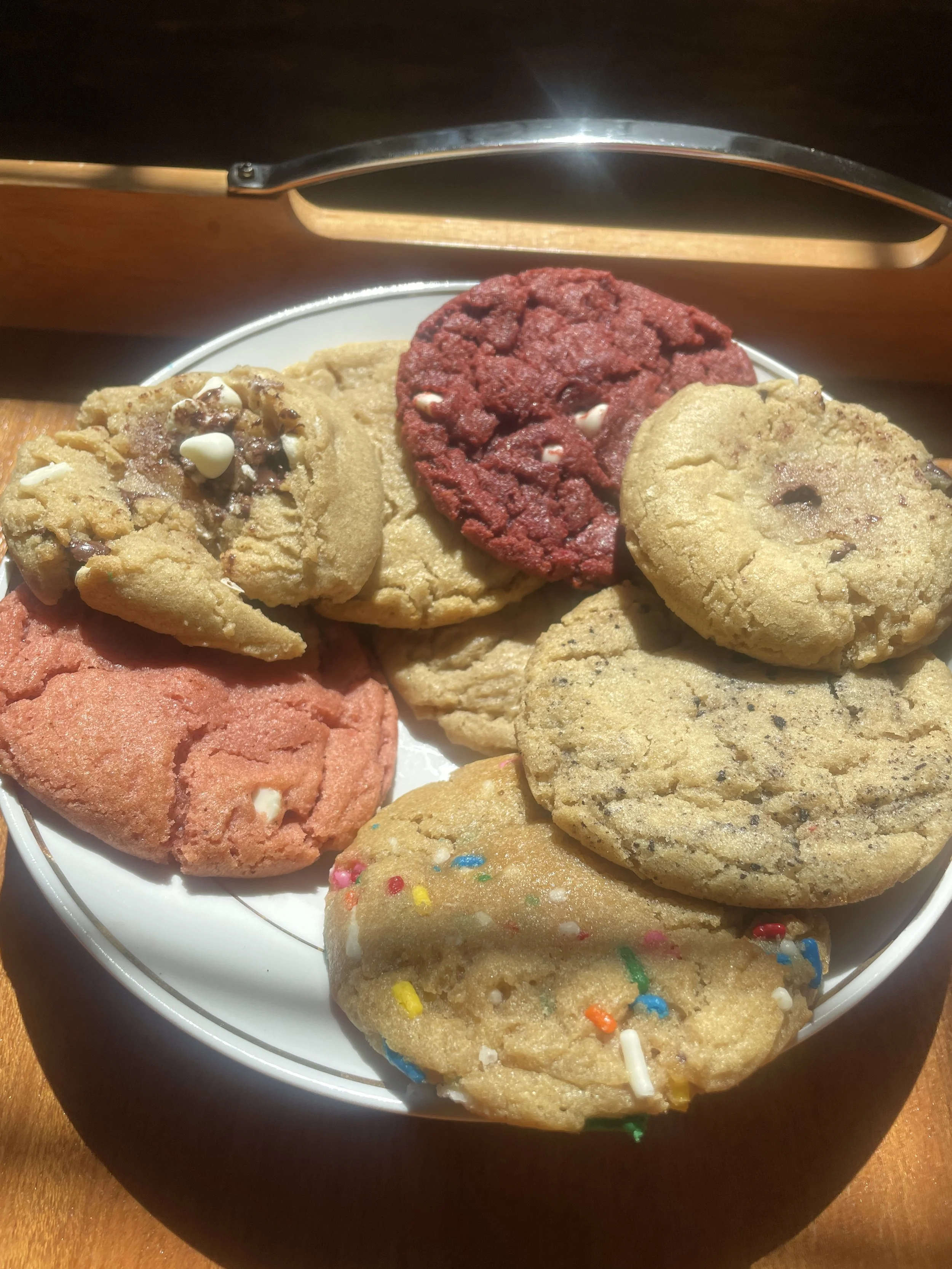 Half a Dozen choose your own Cookie Flavors $10.00 1 Dozen choose your own Cookie Flavors $18.00 2 Dozen choose your own Cookie Flavors $35.00 3 Dozen Choose your own Cookie Flavors $53.00 Lemon Chip Sticker from $3.00 Strawberry Cork-back coaster $7.50